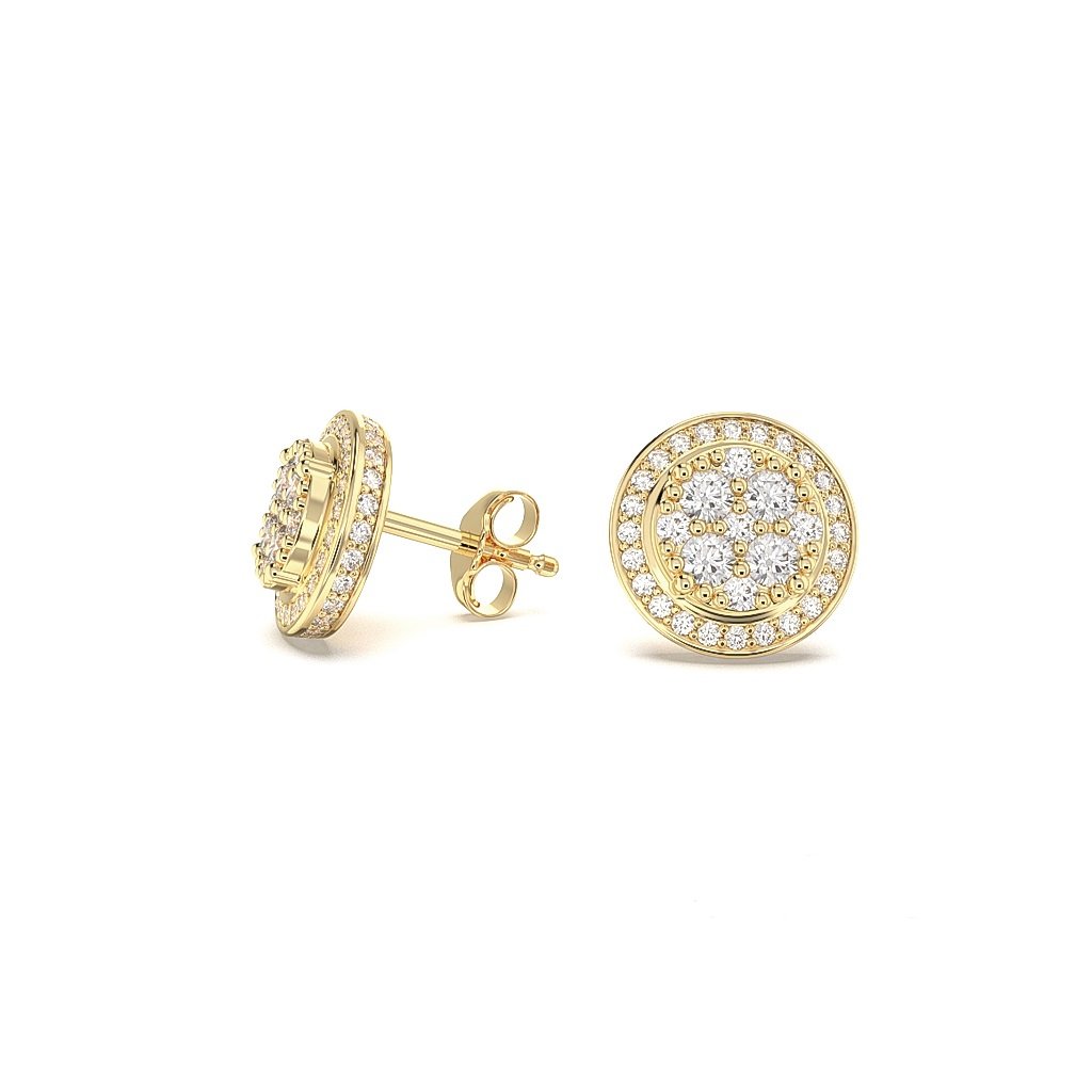 Ak túžite po luxusnom šperku, tieto náušnice sú určené práve pre vás. Nádherné náušnice zo žltého štrnásť karátoveho zlata sú celé vykladané trblietavými diamantmi. Náušnice sú vykladané nielen z pohľadovej časti, ale aj po celom obvode. S týmito náušnicami sa každá žena stane neprehliadnuteľnou. Náušnice máme v ponuke aj v iných farebných prevedeniach alebo so zirkónmi.