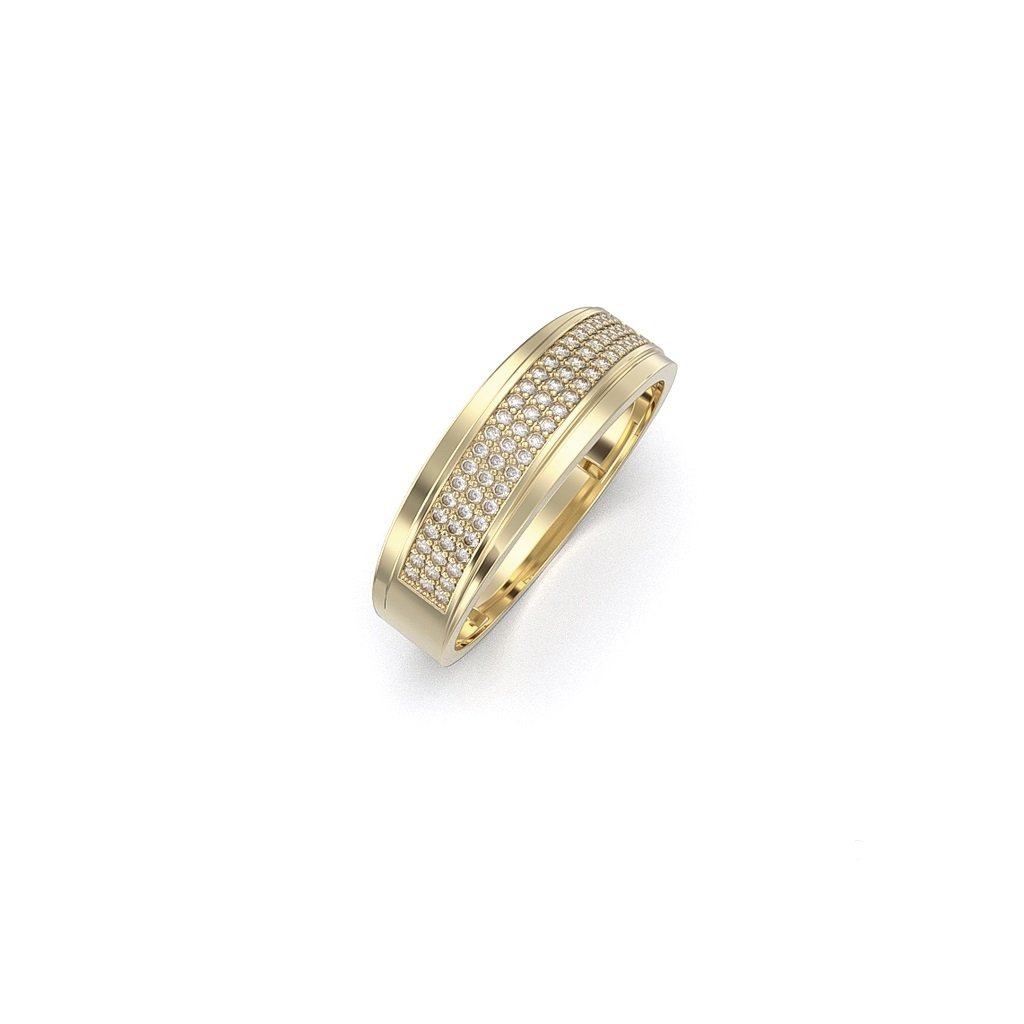 Tento elegantný briliantový prsteň je vyrobený pre všetky dámy, ktoré milujú luxus. Žiarivé brilianty sú precízne osadené v štrnásť karátovom žltom zlate. V pohľadovej časti sú šikmo osadené tri rady žiarivých briliantov, vďaka ktorým sa bude prsteň krásne vynímať na ruke nositeľky.