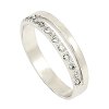 Krásny, exkluzívny prsteň z bieleho zlata má obvod v hornej časti rozdelený do dvoch šiniek. Jedna šinka je hladká a druhú zdobí 12 briliantov s priemerom 1,5 mm. Prsteň má šírku 4 mm a váži 2,7 g pri veľkosti 57. Pravosť briliantov je potvrdená certifikátom.