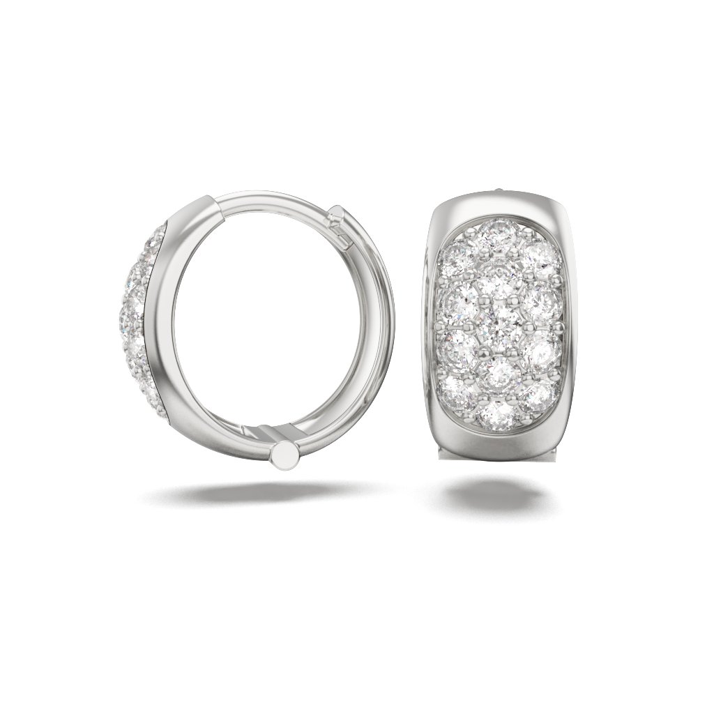 Elegantné dámske zlaté náušnice v tvare kruhu, zdobené 26 žiarivými čírymi zirkónmi. Vyrobené z kvalitného bieleho zlata 585/1000, ideálne na každodenné nosenie aj špeciálne príležitosti.