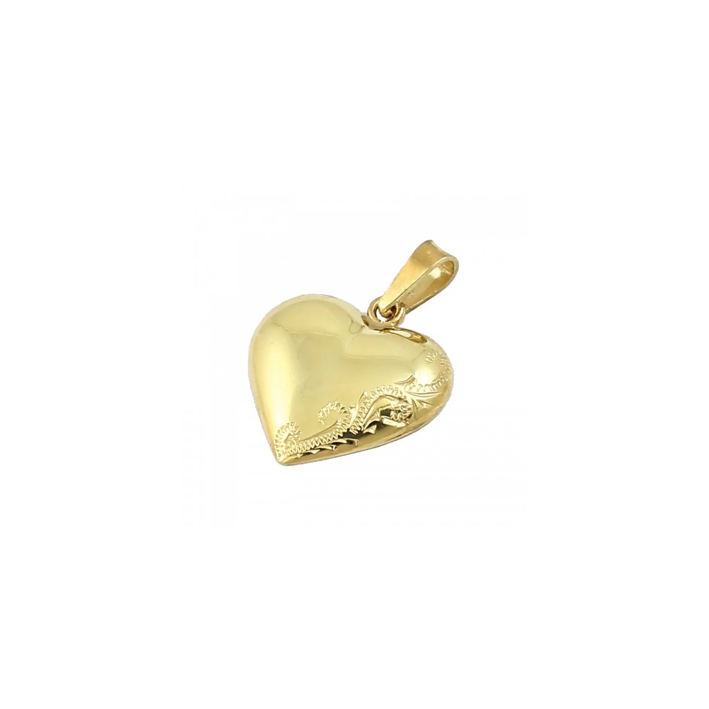 Prívesok v tvare plného srdiečka je zhotovený zo žltého zlata. Srdce má plný objem. Pravý okraj z pohľadovej strany je gravírovaný. Rozmery srdiečka sú 1,8 x 1,8 cm, celková dĺžka je 2,2 cm. Hmotnosť prívesku je 2,5 g.