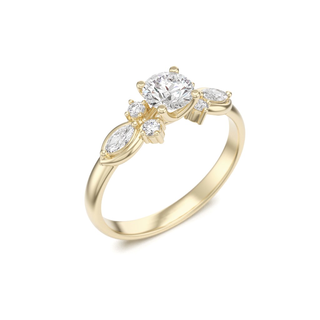 Tento elegantný prsteň je vyrobený z opuncovaného žltého 14k zlata, čo zaručuje jeho pravosť a vysokú kvalitu. Dizajn prsteňa je starostlivo premyslený - centrálny okrúhly zirkón je obklopený menšími zirkónmi a po stranách zdobený kvapkovitými kamienkami v jemnom zlatom objatí. Celková kompozícia vytvára harmonický a luxusný vzhľad, ktorý zaujme na prvý pohľad.
