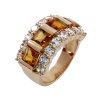 Tento impozantný prsteň je vyrobený zo štrnásť karátového ružového zlata. Prsteň je bohato zdobený citrínmi a zirkónmi. Citríny sú štyri vo veľkosti 5x5mm, zirkónov je šestnásť s priemerom 2mm. Na požiadanie zákazníka je možné prsteň vyhotoviť aj zo žltého a bieleho zlata, resp. s inými kameňmi. Hmotnosť prsteňa pri veľkosti 54 je 7,50 g.