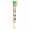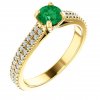 Romantický zásnubný prsteň zo žltého 14-karátového zlata. V hornej časti je osadený veľký zelený zirkón s priemerom 5,2 mm. Po jeho stranách sú na šinke prsteňa vždy v dvoch radoch umiestnené žiarivé zirkóny (60 ks s priemerom 1,1 mm a 4 ks s priemerom 0,8 mm). Šinka má v dolnej časti prsteňa šírku 2,8 mm. Hmotnosť je 4,2 g pri veľkosti 54,5.